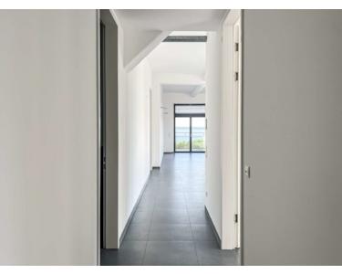 In der gesamten Wohnung sind moderne, großformatige Feinsteinfliesen verlegt, die ein edles und zeitgemäßes Ambiente schaffen. Extrahohe Zimmertüren mit ca. 2,70 m Höhe und großzügige Raumhöhen von bis zu 3,40 m verleihen den Räumen eine imposante Erscheinung. Die Deckenstruktur mit Unterzügen und Hauben, die dem historischen Charakter des Hauses nachempfunden sind, sorgt für ein außergewöhnliches Raumgefühl.