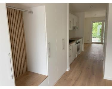 Die Wohnung ist mit einer Einbauküche und einem Einbauschrank im Eingangsbereich ausgestattet.
