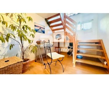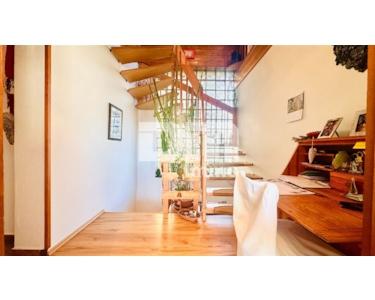 Über eine massive Leichtbautreppe aus Holz gelangen Sie in den Wohnraum EG sowie OG / DG des Anbaus.