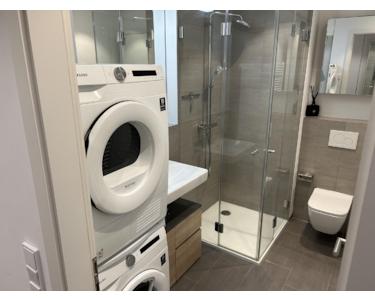 Schlafzimmer, das moderne Duschbad und der großzügige