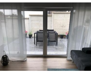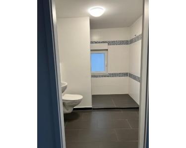 Im Eingangsbereich befindet sich auf der rechten Seite ein kleines oder Gäste-Badezimmer mit Dusche und WC, sowie einem Abstellzimmer. Die Wohnung verfügt über einen direkten Zugang von der Garage ins Innere.