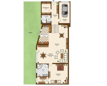 Die Wohnung hat einen separaten Eingang und ist so gelegen, dass es fast wie ein eigenes Haus (Bungalow) betrachtet werden kann.