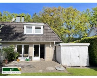 Die Doppelhaushälfte liegt im schönen, grünen Stadtteil Wohldorf-Ohlstedt. Der Villenvorort im Wald gehört zu den beliebten Walddörfern im Nordosten von Hamburg.
