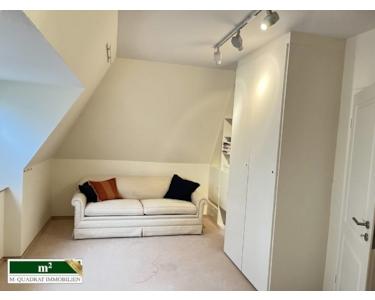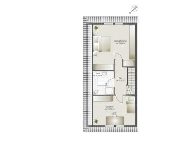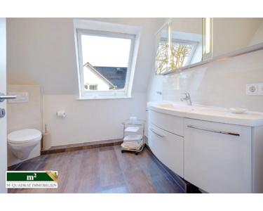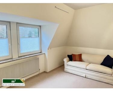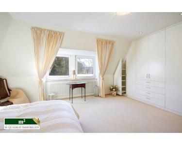 Das großzügige Hauptschlafzimmer mit ca. 23 m² lässt sich bei Bedarf problemlos in zwei separate Räume unterteilen. Dank der besonderen Dachform wirken alle Zimmer angenehm hell und keinesfalls beengt. Ergänzt wird diese Ebene durch ein modernisiertes Duschbad mit Dachfenster, das 2012 zeitgemäß erneuert wurde.