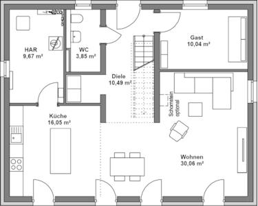 Grundrisse, Visualisierungen und Illustrationen dienen der Veranschaulichung, sind nicht maßstabsgetreu und können optionale Sonderausstattungen zeigen. Ausschlaggebend ist die individuelle Planung mit dem Generalübernehmer.