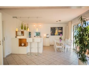 - Moderne, hochwertige Küche mit Tresen, offen zum Wohnbereich