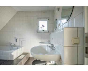 - Badezimmer mit Dusche/Bad und 2 Waschbecken im OG
