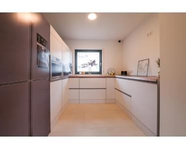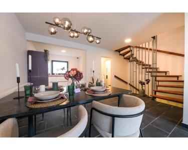 Treten Sie ein in Ihr neues, komfortables und geräumiges Heim! Das Haus öffnet sich mit einem einladenden Flur, der Sie direkt zum Gäste-WC und einer Garderobenecke führt. Die großzügige Küche bietet genug Platz, um Ihre kulinarischen Fähigkeiten zu entfalten. Der Wohn- und Essbereich mit direktem Zugang zur Terrasse lädt zu geselligen Abenden mit der Familie oder Freunden ein.