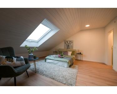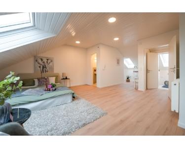 Das Dachgeschoss bietet einen weiteren Wohnraum mit eigenem Badezimmer und WC.