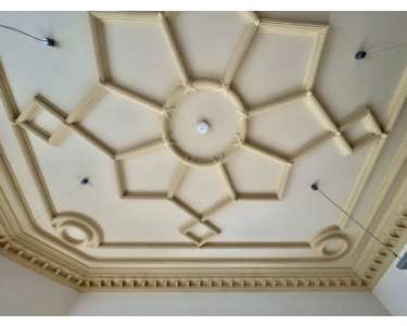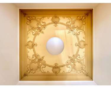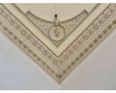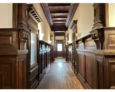- Kassettendecken, Wandverkleidungen aus Eichenholz, dekorativer Innenstuck