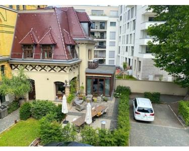 Das zum Anwesen gehörende Kutscherhaus im rückwärtigen Bereich wurde liebevoll restauriert und harmonisch in das Ensemble eingebettet. Auch das barocke Portal zur Talstraße wurde aufwendig wiederhergestellt und rundet den historischen Charakter des Anwesens stilvoll ab.