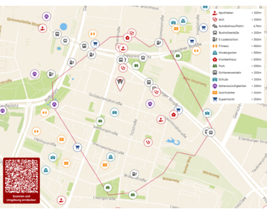 • Universität Leipzig & Campus: ca. 800 m, gut per Rad oder Bahn erreichbar