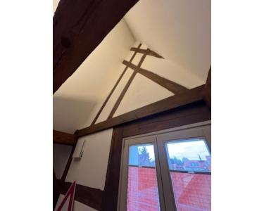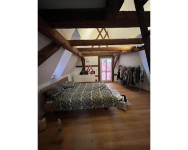 Dieses außergewöhnliche Dachgeschoss-Loft vereint historischen Charme mit großzügigem Raumgefühl. Die sichtbar erhaltenen Fachwerkbalken verleihen der Wohnung eine warme, authentische Atmosphäre und unterstreichen den einzigartigen Charakter des Objekts. Die beeindruckende Deckenhöhe schafft ein offenes, luftiges Wohngefühl und lässt viel Raum für individuelle Gestaltungsmöglichkeiten.