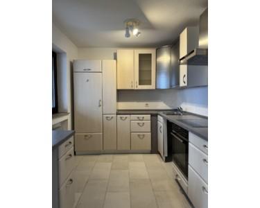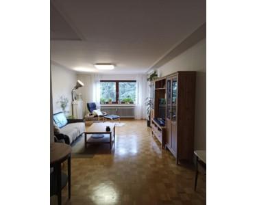 Die 3,5-Zimmer Wohnung befindet sich im Hochparterre des 1981 erbauten 6 Familienhaus. Die Wohnung besteht aus 2 Schlafzimmer, Bad mit Badewanne und Dusche, separates WC, Abstellraum, einer Küche mit Einbauküche und zwei Balkonen. Eine Garage und Kellerraum sind auch vorhanden. Das Verhältnis der Mieter im Haus ist sehr gut. Der Hausmeister wohnt selbst im Haus, auch muss keine Kehrwoche selbst gemacht werden.