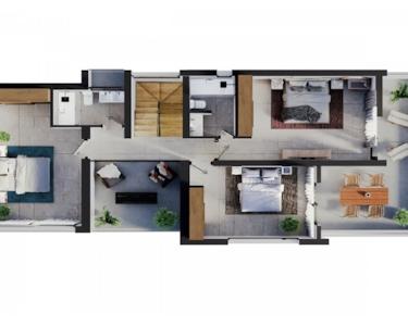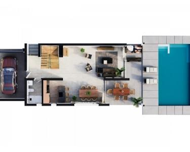 Moderne Villen mit 3 Schlafzimmern und 3 Bädern auf unabhängigen Grundstücken, durchdacht gestaltet über zwei Etagen mit hellen Innenräumen, offenen Räumen und großzügigen Terrassen. Es erwartet Sie ein perfektes Gleichgewicht aus zeitgenössischem Stil und Funktionalität.
