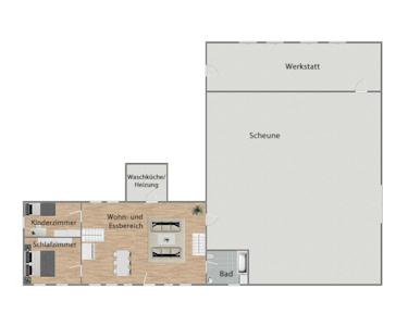 Das charmante Wohnhaus verfügt über eine einladende Wohnfläche von ca. 125 m², die sich auf zwei Etagen verteilt. Es bietet einen gemütlichen Rückzugsort, der sich perfekt für Paare und Familien eignet.