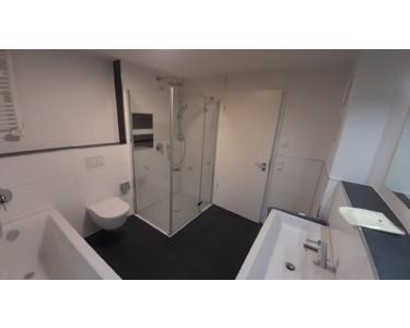 Tageslichtbad inkl. Dusche (gefliest), Badewanne und Waschtisch + Gäste WC