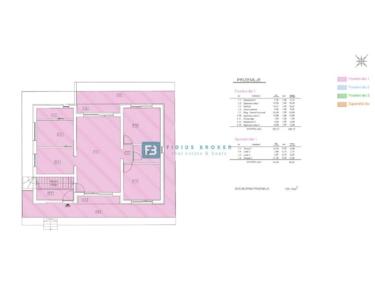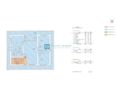 Im Erdgeschoss befindet sich eine komplett möblierte und ausgestattete Wohnung. Sie besteht aus einem Eingangsbereich, drei Schlafzimmern, zwei Badezimmern, einer Wohnküche und einem Wohnzimmer mit Zugang zur Terrasse und zum Garten. Im ersten Obergeschoss befindet sich eine komfortable Wohnung mit Eingangsbereich, Flur, drei Schlafzimmern (jeweils mit Zugang zur Terrasse), zwei WCs, einem Badezimmer, einem Abstellraum, einer Waschküche, einem geräumigen Wohnzimmer mit Wohnküche, einer Loggia und einer 54,03 m² großen, die Wohnung umgebenden Terrasse. Im 2. Obergeschoss befindet sich eine geräumige Wohnung mit Eingangsbereich, zwei komfortablen Schlafzimmern, WC, Badezimmer, einer großzügigen Wohnküche und einem Wohnzimmer mit Zugang zu einer überdachten Terrasse (17,05 m²). Jede Wohnung verfügt über einen separaten Eingang sowie eigene Wasser- und Stromzähler.