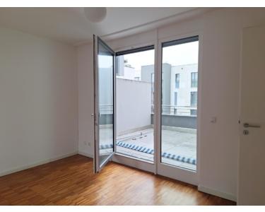 Die attraktive Wohnung besticht durch eine gut durchdachte Raumaufteilung mit einem großzügigen Wohnzimmer mit Küche und zwei Schlafzimmern, von denen ein Zimmer auch als Kinderzimmer oder Arbeitszimmer genutzt werden kann. Jeder Wohnraum verfügt über bodentiefe Fenster oder Terrassentüren und Oberlichter über allen Zimmertüren. Sowohl über das Wohnzimmer als auch über ein Schlafzimmer gelangt man auf die großzügige Terrasse, die nach Westen ausgerichtet und zum Teil überdacht ist. Hier können Sie den Tag ausklingen lassen und den Sonnenuntergang genießen.
