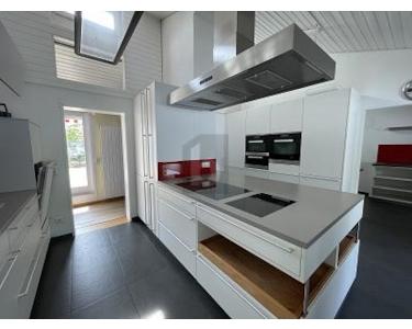 Die 5-Zimmer-Wohnung mit großzügigen 165 m² mit einer traumhaften 58 m² großen Dachterrasse und einem überdachten Balkon mit 24 m² ist aktuel befristet vermietet. Die Wohnung verfügt zudem über zwei Garagen mit je 21 m². Ein absolutes Highlight ist die hochwertige Bora- Einbauküche im Wert von über 100.000 Euro. Die Wohnung eignet sich auch ideal für Unternehmer, da sie zusätzlich rund 455 m² Produktionsräume mit Büros und WC bietet. Optional kann auch eine weitere Gewerbefläche von 200 m² gemietet werden. Die günstige Lage am Autobahnzubringer ermöglicht eine schnelle Anbindung an die Schweiz und an Frankreich in nur 5 Minuten!