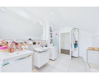 Im Dachgeschoss befinden sich drei gemütliche Schlafzimmer, ein Ankleidezimmer und ein stilvolles Familienbad. Die hochwertigen, modernen Wohnmöbel können ebenfalls optional übernommen werden – perfekt abgestimmt auf das elegante Gesamtkonzept.
