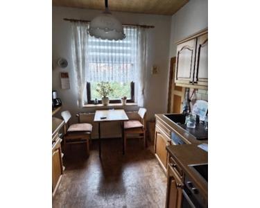 Das Reihenendhaus hingegen wurde bereits teilweise modernisiert: 1993 wurde eine neue Gasheizung installiert, und 1997 wurden das Dach und die Fenster erneuert. Es bietet im Erdgeschoss Flur, Wohnzimmer, Küche, Bad und Abstellraum. Im Obergeschoss befinden sich ein weiteres kleines Bad, ein Flur und zwei weitere Zimmer. Der Keller wurde professionell trockengelegt.