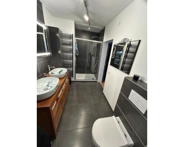 Mit einer großzügigen Wohnfläche von ca. 265 m² und einem durchdachten Grundriss ist es ideal für individuelles Wohnen und Entspannen. Im Erdgeschoß erwartet sie ein heller, großzügiger Eingangsbereich, das Gäste WC und der offene Treppenaufgang zur ELW. Des Weiteren besticht das EG durch den geräumigen Wohn- und Essbereich mit neuer, offener Küche, separiertem Schlafbereich mit 2 Zimmern, davon eines mit Bad en Suite und Zugang zur Terrasse.