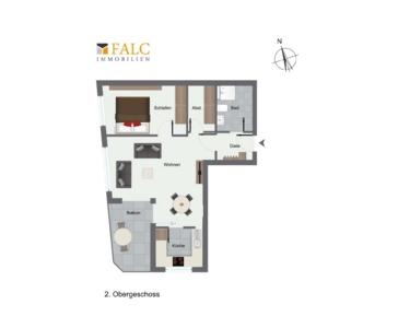 • Zwei-Zimmer-Wohnung im 2. Obergeschoss, ca. 52,7 m² Wohnfläche