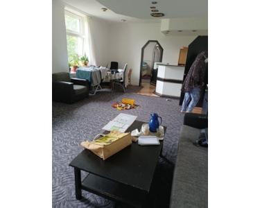 Im Tageslicht-Bad befindet sich eine Wanne mit integrierter Dusche, erneuertes WC sowie neuen Grohearmaturen. Der Boden ist mit schwarz-grauen Fliesen, die Wände mit weißen Fliesen versehen. Der Küchen- und Dielenboden ist mit weißen -grauen Kunststoffböden ausgestattet, die den modernen und freundlichen Eindruck dieser Wohnung unterstreichen. Die Nische in der Diele eignet sich hervorragend für einen Einbauschrank. Es gibt ein riesiges Wohnzimmer, das problemlos abzuteilen ist, um ein Schlafzimmer mehr zu haben.