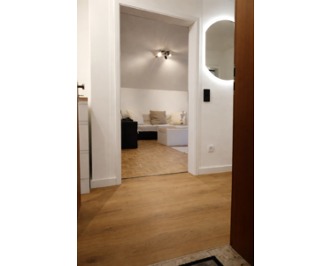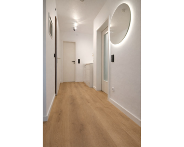 Das Schlafzimmer wirkt ruhig und einladend. Das moderne fugenlose Badezimmer, wurde komplett neu gestaltet. Es besticht mit klarer Linienführung und fügt sich harmonisch in das hochwertige Gesamtbild der Wohnung ein. Küche, Flur und Eingangsbereich sind funktional und durchdacht gestaltet.