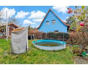 Der Außenbereich überzeugt mit einer einladenden Terrasse, einem gepflegten Garten mit Pool sowie einem praktischen Schuppen für Werkzeuge und Gartengeräte. Drei PKW-Stellplätze im Freien runden das Angebot ab.