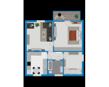 Das 1. Obergeschoss beherbergt eine liebenswert gestaltete 2-Raumwohnung, die sofort ein Gefühl von Leichtigkeit und Ruhe vermittelt. Der offen wirkende Grundriss schafft ein angenehmes Wohngefühl, während die helle EBK zu gemeinsamen Kochmomenten einlädt. Besonders der Balkon verleiht dieser Etage ihren Charme: Ein Ort, an dem man den Morgen mit einer Tasse Kaffee begrüßt oder laue Sommerabende in aller Ruhe ausklingen lässt. Eine Etage, die Geborgenheit und Lebensqualität gleichermaßen ausstrahlt.