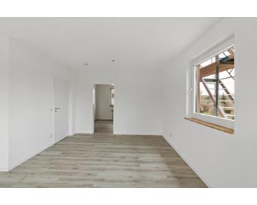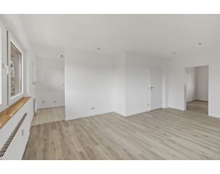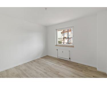 Das Herzstück der Wohnung bildet das großzügige Wohnzimmer mit angrenzender, offen gestalteter Küche. Dieser Bereich lädt zum entspannten Verweilen und gemeinsamen Leben ein. Ein pflegeleichter Laminatboden sorgt in allen Wohnräumen für ein angenehmes und behagliches Wohngefühl.