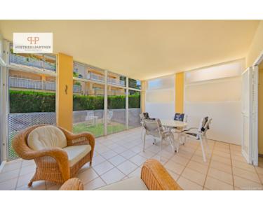 Diese charmante Erdgeschosswohnung in Ecklage befindet sich in einer gepflegten Gemeinschaftsanlage in Puerto Pollensa. Sie verfügt über zwei Schlafzimmer, ein helles Wohn-Esszimmer sowie eine überdachte Terrasse, die komplett mit Fliegenschutzgittern versehen und zusätzlich gegen Katzenkrallen gesichert ist – so lässt sich das Leben im Freien ganz ohne Insekten genießen.