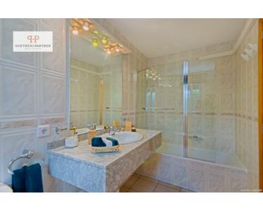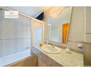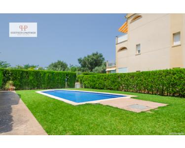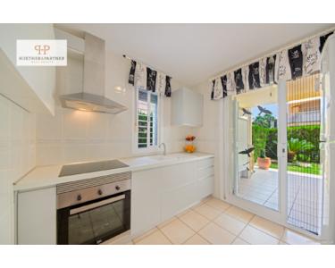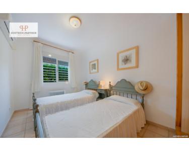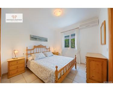 Eine Klimaanlage (warm/kalt) ist im Wohnzimmer sowie im Hauptschlafzimmer installiert. Zur weiteren Ausstattung gehören eine abgeteilte Waschküche, ein Abstellraum sowie ein privater Garten mit ca. 40 m² Fläche und direktem Zugang zum Gemeinschaftspool.