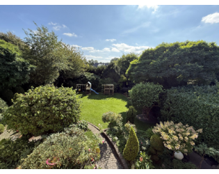 Bodentiefe Fensterflächen und hohe Decken schaffen einen fließenden Übergang zur Terrasse und geben den Blick frei auf einen wahren Schatz: Den uneinsehbaren, eingewachsenen Garten. Diese private Oase lädt mit altem Baumbestand, blühenden Sträuchern und gepflegten Rasenflächen zum Spielen und Entspannen ein.