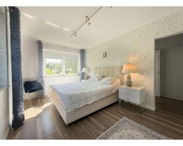 Komplettiert wird diese Etage durch eine neuwertige Premium-Einbauküche (Markengeräte & viel Stauraum) sowie einen separaten Schlaftrakt mit drei Zimmern und zwei Bädern – ideal für barrierefreies Familienwohnen auf einer Ebene.
