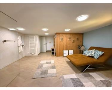 Über die Treppe erreichen Sie das Obergeschoss, das echte Flexibilität bietet. Neben zwei beeindruckenden Studioräumen (perfekt als Homeoffice, Atelier oder Kinderparadies) befindet sich hier eine separate Einliegerwohnung. Nutzen Sie diese Fläche für Gäste, ein Au-Pair, ältere Kinder oder generieren Sie attraktive Mieteinnahmen.