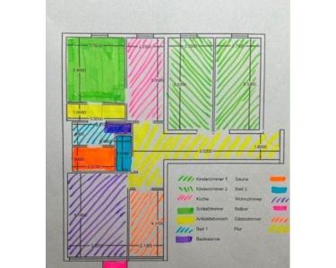 Im Zuge der Umgestaltung wurde die ursprünglich sehr große Diele verkleinert. Dadurch entstanden zwei vollständig neu erstellte Badezimmer – eines mit Dusche, und eines mit einer großzügigen Badewanne (190 x 90 cm) - sowie eine private Sauna. Zudem wurde eine neue Einbauküche installiert.