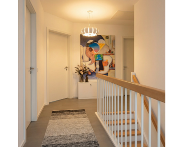 Im oberen Geschoss liegen drei Schlafzimmer sowie ein großes Bad mit Dusche und Badewanne. Das Bad ist komplett eingerichtet, inklusive Handtücher und Haartrockner. Hier lässt es sich gut einziehen und wohlfühlen.