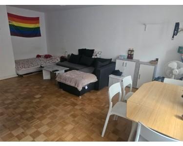 Sie besteht aus einem hellen, abgetrennten Küchenbereich (Küchenzeile ablösefrei enthalten) und einem großen Wohn- / Schlafbereich mit 2 großen Fenstern.