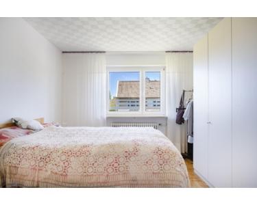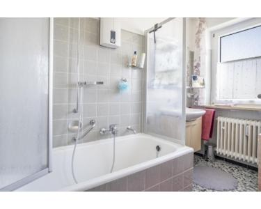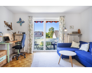 Das Wohnzimmer ist lichtdurchflutet und bietet über eine doppelflügelige Balkontür Zugang zum Westbalkon, auf dem sich die Abendsonne genießen lässt. Wohn- und Schlafzimmer sind mit Mosaikparkett ausgestattet, Küche, Bad und separates WC sind gefliest. Die Ausstattung ist gepflegt und überwiegend dem Baujahr entsprechend, bietet somit eine solide Basis für individuelle Modernisierungen.