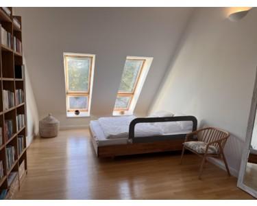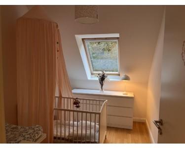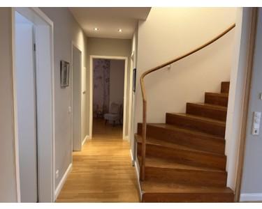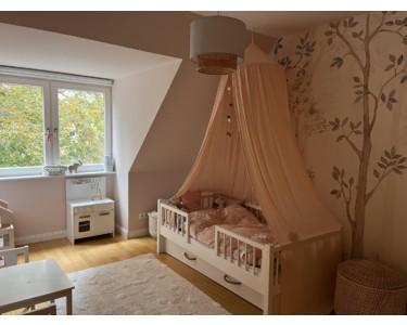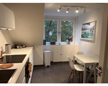 Die ca. 112 m² große Maisonette-Wohnung befindet sich in Hamburg-Lokstedt nahe dem UKE in einer ruhigen Straße, die von Rotbuchen gesäumt ist. Die Wohnung ist hell, gemütlich und sehr gepflegt – ein Ort zum Wohlfühlen und Ankommen. Vom Eingangsbereich mit praktischen Einbauschränken erreichen Sie über den Flur das rund 24 m² Wohn- und Esszimmer mit bodentiefen Fenstern, die für viel Licht sorgen. Hier schließt sich der nach Süden ausgerichtete Balkon mit einer elektrischen Markise an. Gegenüber befindet sich ein Kinderzimmer, das sich auch als Arbeitszimmer eignen würde. Daneben liegt die Küche, die mit hochwertigen Bodenfliesen ausgestattet ist und über eine moderne Einbauküche verfügt. Das gegenüberliegende Duschbad ist geräumig und bietet durch einen Einbauschrank Platz für eine Waschmaschine. Neben dem Bad befindet sich ein weiteres, gemütliches Kinderzimmer. Die Holztreppe führt in ein ca. 26 m² großes Zimmer mit sehr hohen Decken und Velux-Fenstern, das momentan als Schlafzimmer genutzt wird. Hier schließen sich ein Ankleidezimmer, ein weiteres Bad und ein Abstellraum an. Die gesamte Wohnung verfügt über Fußbodenheizung. Im Kellergeschoss gibt es eine Waschküche mit Platz für Waschmaschine und Trockner. Die großzügige Tiefgarage beinhaltet einen Tiefgaragenstellplatz für jede Wohneinheit und bietet Abstellmöglichkeiten für z. B. Kinderwagen oder Lastenräder.