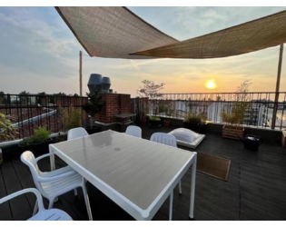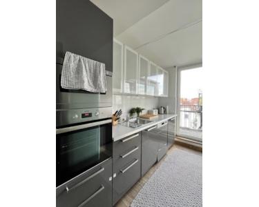 Das Herzstück der Wohnung bildet der offen gestaltete Wohn- und Essbereich mit integrierter Einbauküche und direktem Zugang zur rund 40 m² großen privaten Dachterrasse. Von hier aus eröffnet sich ein weiter Blick über die Dächer Berlins – ideal für sonnige Nachmittage, gesellige Abende oder ruhige Stunden im Freien.