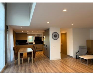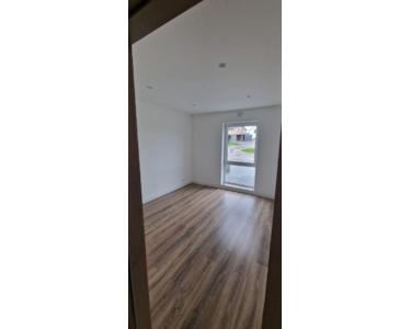 Im Erdgeschoss befindet sich ein geräumiges, helles Wohnzimmer kombiniert mit einer Küche und Essbereich, von dem aus man Ausgang auf die Terrasse hat. Ebenfalls im Erdgeschoss gibt es einen separaten Raum, der als Büro oder Gästezimmer genutzt werden kann, sowie ein Badezimmer mit WC und Dusche. Von der Küche ist direkt Hauswirtschaftsraum/Waschraum erreichbar.
