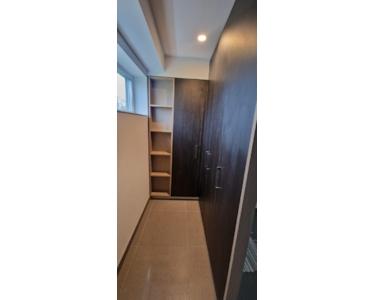 Das Ankleidezimmer verfügt über eingebaute Regale und Schubladen. In der Diele gibt es eingebaute Garderobe.