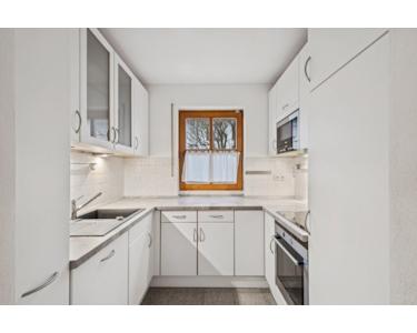 Das helle, geräumige Wohnzimmer im Erdgeschoss verfügt über eine offene moderne Einbauküche. Die Einbauküche ist vollausgestattet mit einem Geschirrspüler, einer Kühl,- und Gefrierkombi, einem E- Herd und einer Mikrowelle. Einem sofortigen Einzug steht demnach nichts im Weg.