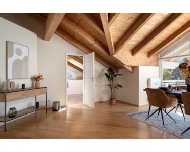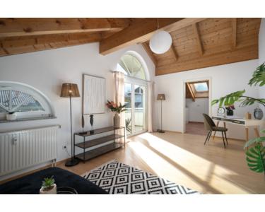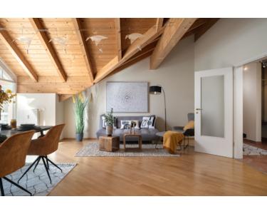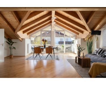 - Exklusive Dachgeschosswohnung mit beeindruckenden, bis zu 3,70 m hohen Sichtholzdecken