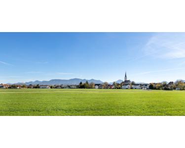 Die umliegenden Felder beginnen direkt vor Ihrer Haustür und laden zu Spaziergängen, Joggingrunden oder Fahrradtouren ein – stets begleitet vom beeindruckenden Alpenpanorama.