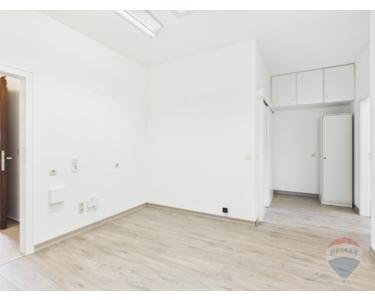 Die Praxisfläche umfasst vier geräumige Behandlungszimmer oder Büroräume, die vielfältige Nutzungsmöglichkeiten bieten. Der große Empfangsbereich, der gleichzeitig als Warteraum dient, wird von einer Lichtquelle im Dach erhellt und sorgt für eine angenehme Atmosphäre.